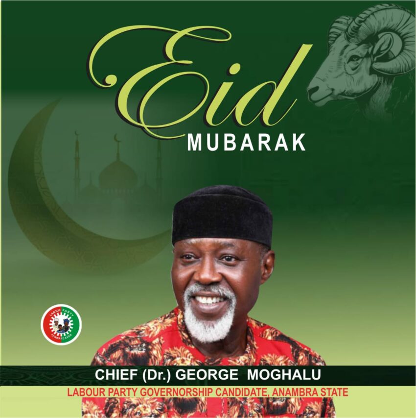 As Muslims in Nigeria and around the world celebrate this year’s Eid-el-Kabir, the Labour Party Governorship Candidate in Anambra State and Immediate Past Managing Director of the National Inland Waterways Authority (NIWA), Chief Dr. George Moghalu, has extended warm greetings and heartfelt wishes to the Muslim community in Anambra State and beyond.