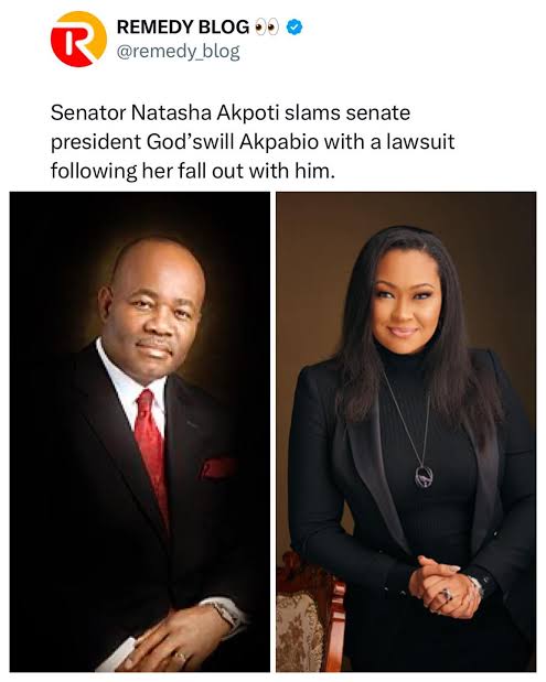 Akpoti-Uduaghan, who is representing Kogi Central Senatorial District, alleged that the Senate President, Akpabio, tarnished her image through a defamatory post that was published on his social media platform, Facebook.