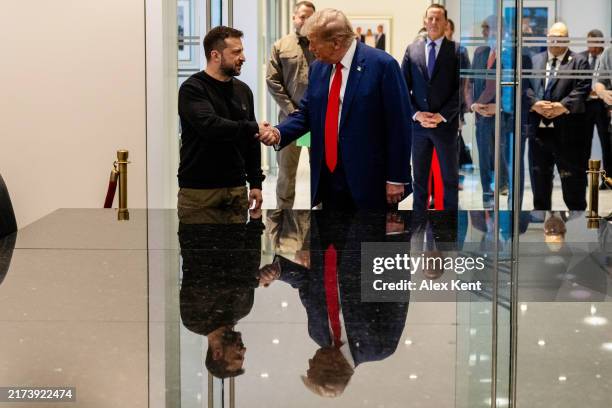 US President Donald Trump greets Ukraine’s President Volodymyr Zelensky as he arrives at the White House in Washington, DC, USA.
