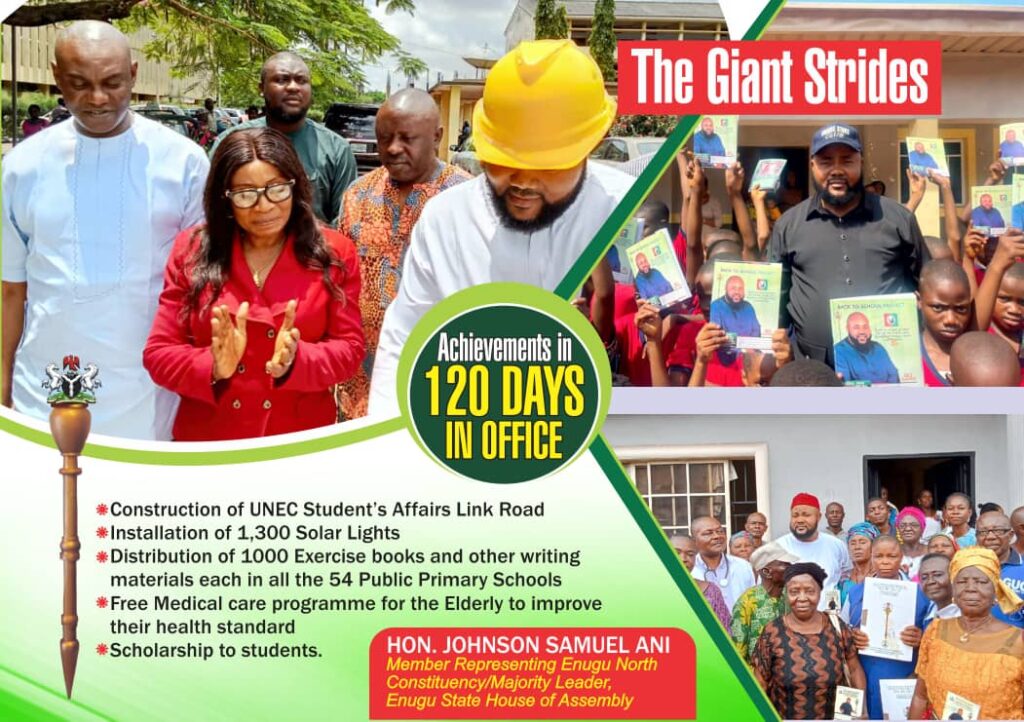 The Giant Strides of Hon. Johnson Samuel Ani within 120 days in office as Majority Leader Enugu State House of Assembly, Representing Enugu North Constituency