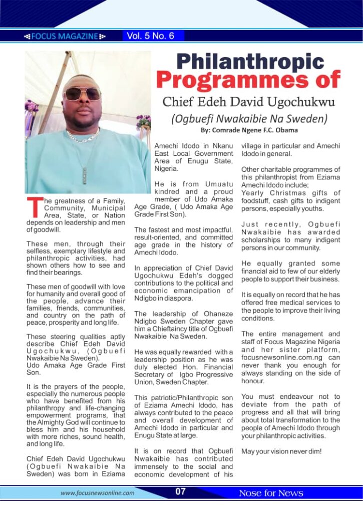 The Philanthropic Programmes of Chief Edeh David Ugochukwu, (Ogbuefi Nwakaibie Na Sweden).